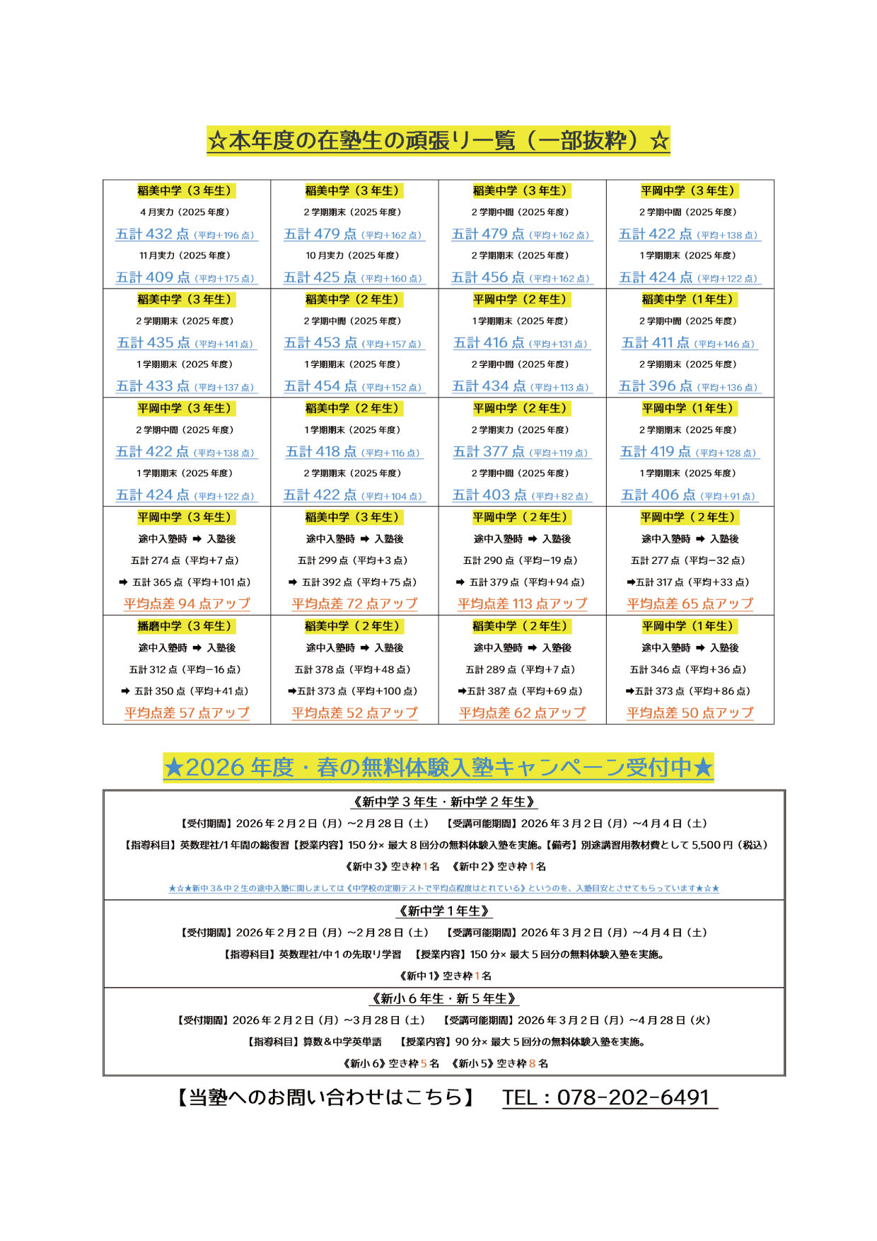 【2/1更新】在塾生の成績・現在の空き席状況はコチラ